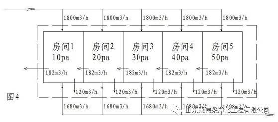 整個房間群除了房間1對外的門縫滲風(fēng),還包括了所有的房間對吊頂?shù)臐B風(fēng)。Wei Sun在他的[Quantitative Multistage Pressurizations In Controlled And Critical Environments]中提到如果考慮吊頂?shù)葎e處的圍護結(jié)構(gòu)的滲風(fēng)的話,可以使用公式1乘上一個安全系數(shù)[他的文中并沒有提到安全系數(shù)的參考值][3]。但是這種做法是值得商榷的.