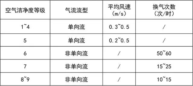 注:① 表中換氣次數(shù)適應(yīng)于層高小于4.0m的潔凈室。