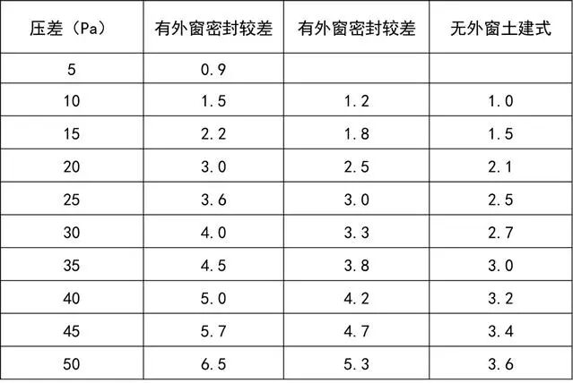 圍護(hù)結(jié)構(gòu)單位長度縫隙的滲漏風(fēng)量表(m3/h·m)