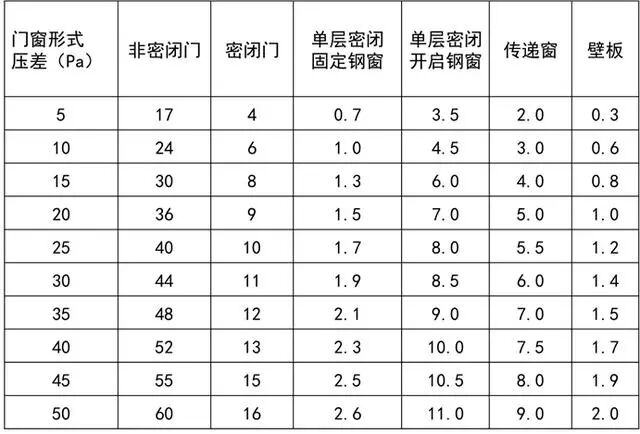 潔凈室的壓差值與房間換氣次數(shù)表(次/時)